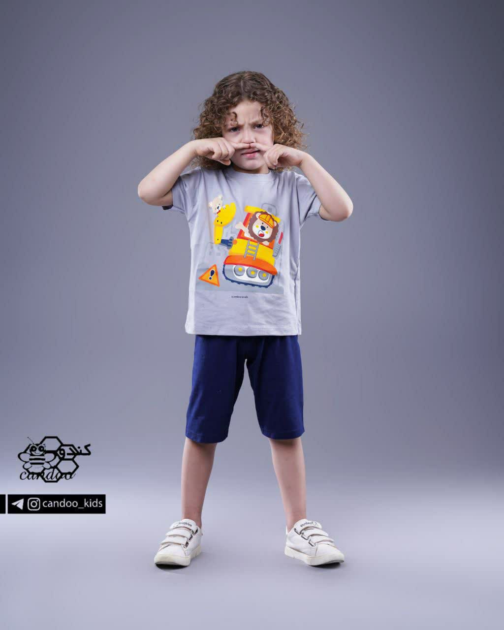 ست راحت و شیک مناسب بچهها برای بازی و استفاده روزمره، با طرح جذاب بیل مکانیکی که عاشقش میشوند!