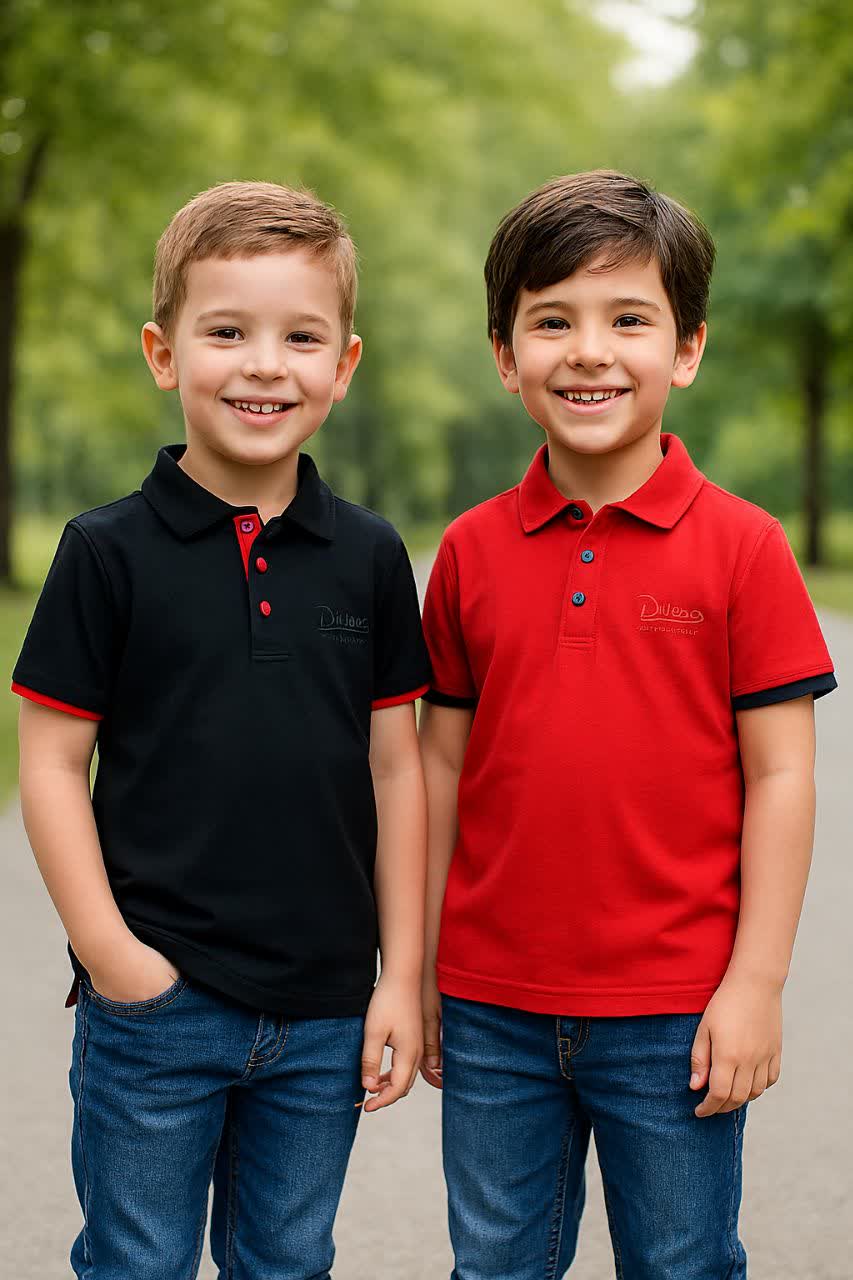 تیشرتی راحت و باکیفیت با یقهدار شیک و مناسب فعالیتهای روزمره برای کودکان نه تا ده سال.