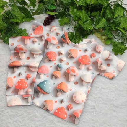 ست تیشرت و شلوار سهبعدی طرح قارچ فانتزی – مدل جذاب کودکانه